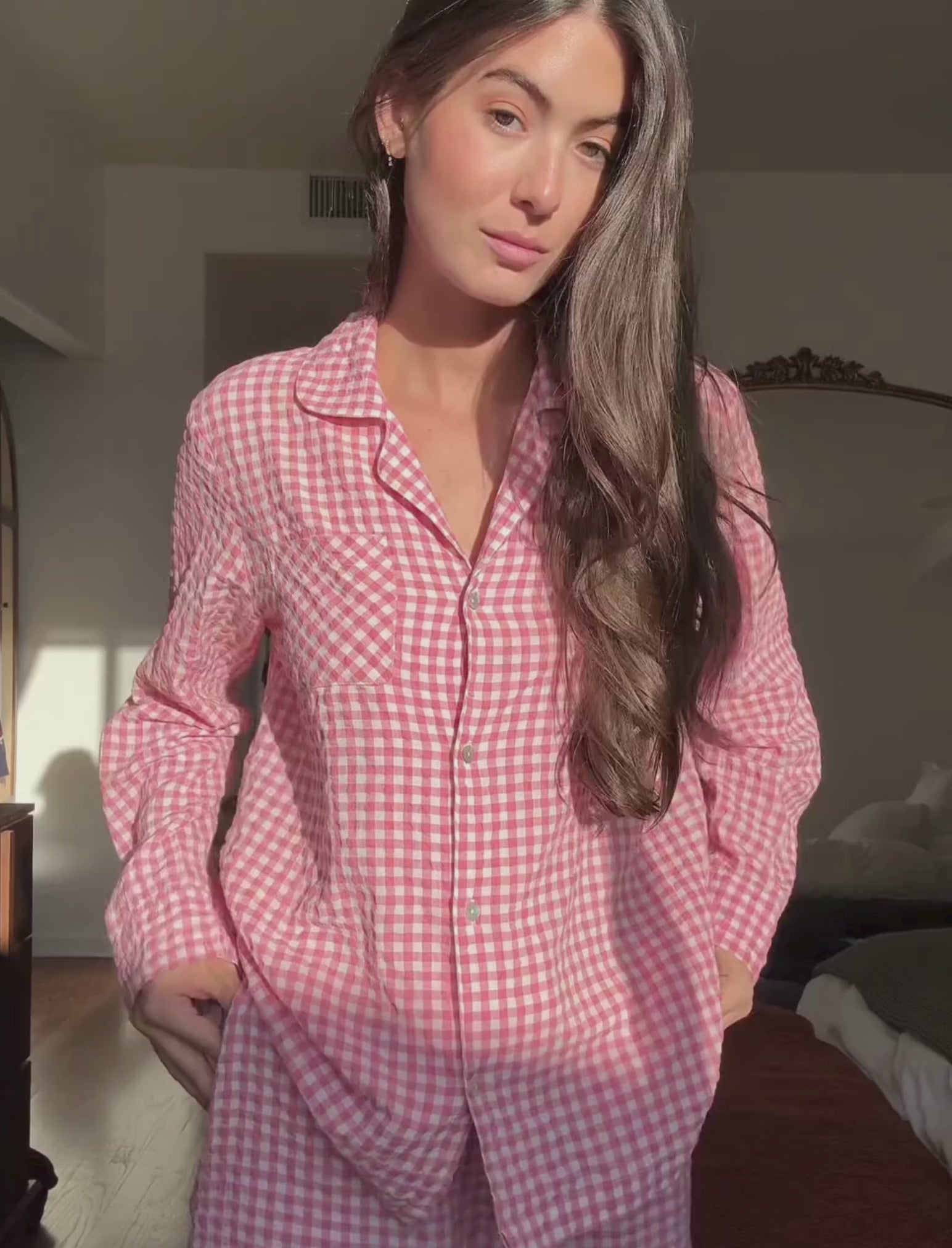 Seersucker Gingham Full Length PJ Set