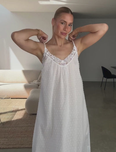 Float through summer in this easy maxi nightie. Made from our signature Swiss Dot Cotton, this nightie will be your go-to for those warmer nights